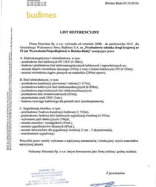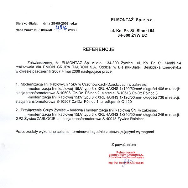 | Prace wykonane na terenie TAURON DYSTRYBUCJA S.A. Oddział w Bielsku-Białej |