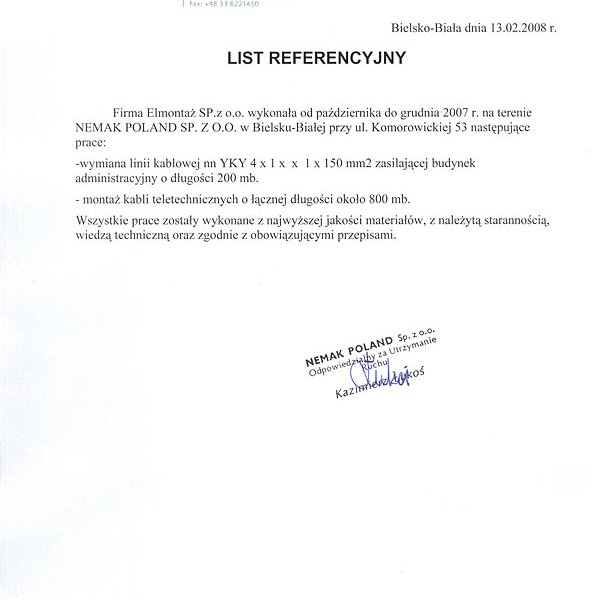 | Prace energetyczne na terenie firmy Nemak Poland. |
