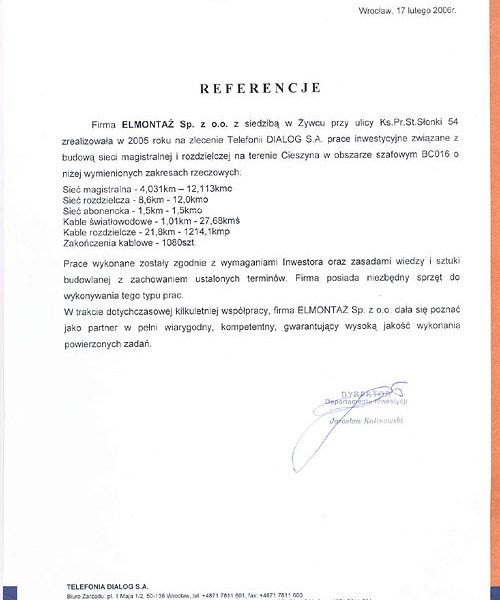 | Budowa przyłącza LMDS dla Fiat Polska Sp.z.o.o. w Bielsku-Białej |