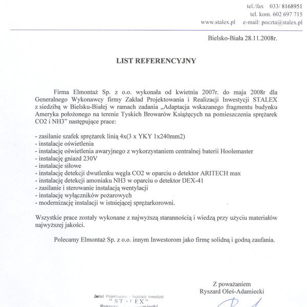 | Roboty elektryczne i AKPiA związane z budową zakladu CTL Haldex S.A. w Sosnowcu |