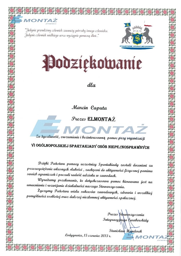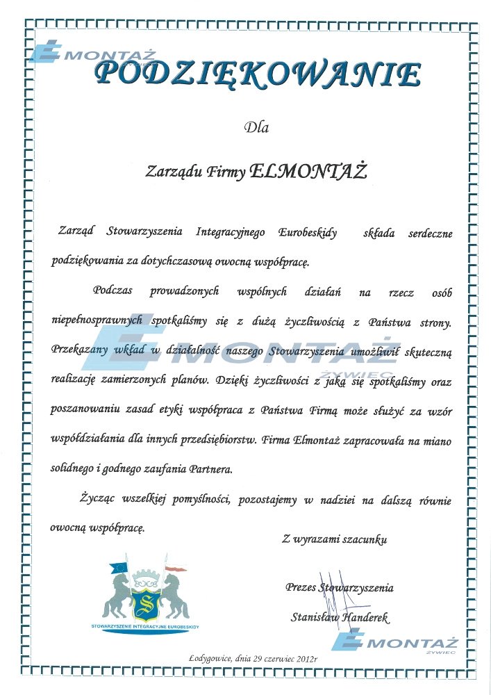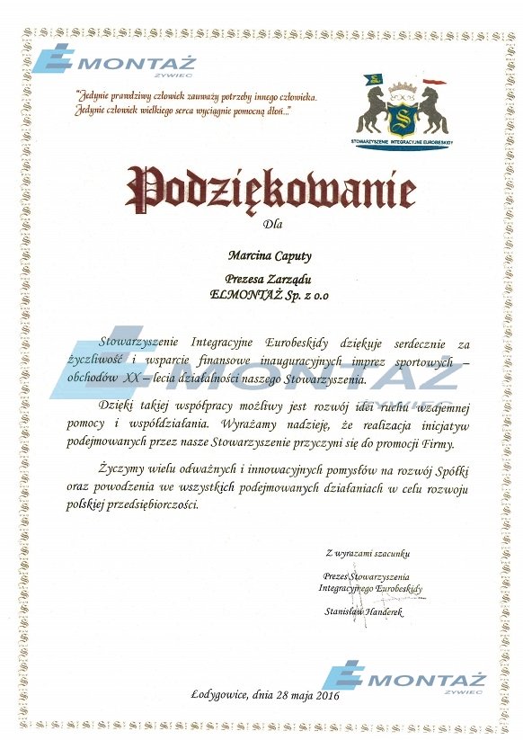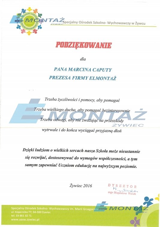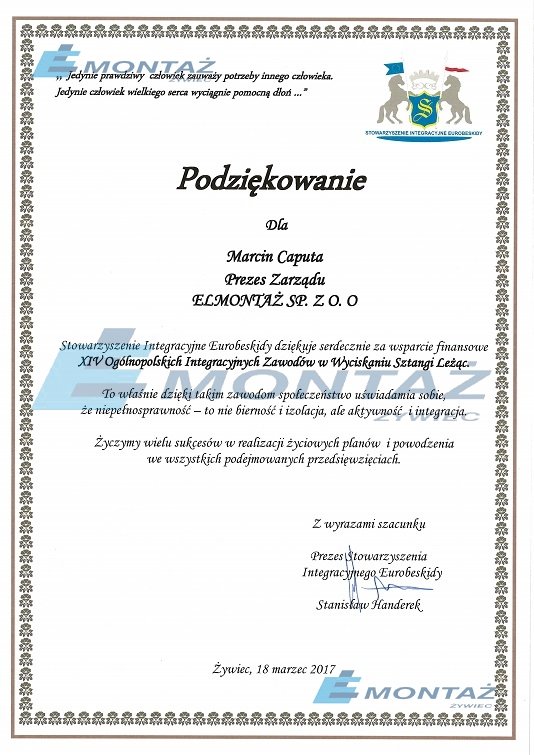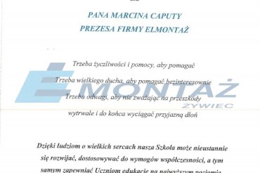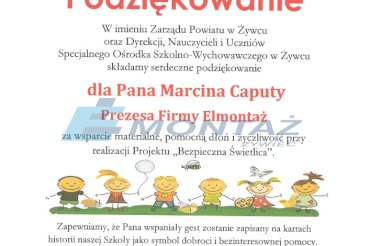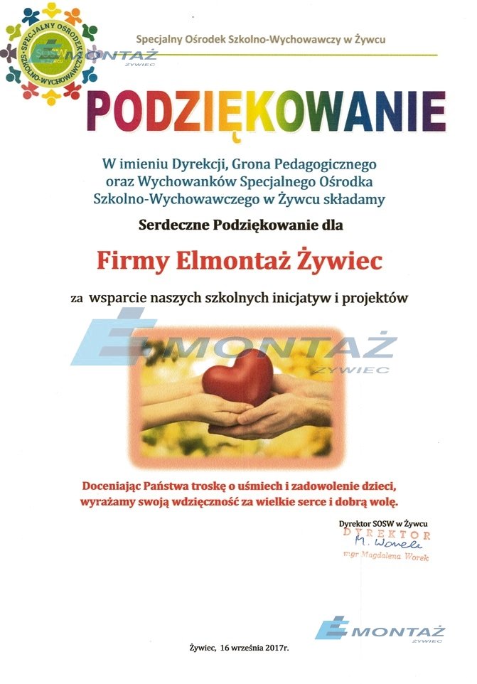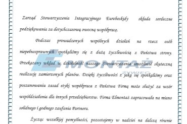 Elmontaż Sp. z o.o. od lat angażuje się w działalność prospołeczną i charytatywną. Z dbałością i troską reagujemy na problemy potrzebujących, dlatego też każdego roku staramy się odpowiadać na prośby jakie otrzymujemy, przede wszystkim z lokalnych środowisk. Wspieramy wiele inicjatyw, w głównej mierze dotyczące dzieci i młodzieży.