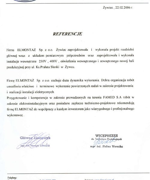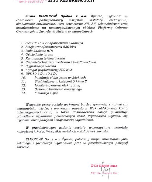 | Prace pomiarowe przy urządzeniach i sieciach elektroenergetycznych na poszczególnych obiektach zakładu Teksid Iron Poland Sp. z o.o. |