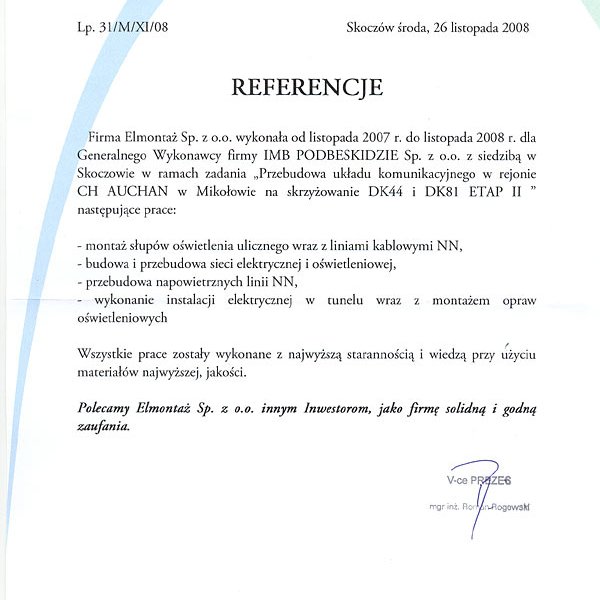 | Oświęcim ul.Fabryczna, Gmina Miasto Oświęcim, przyłączenie zakładu produkcyjnego budowa ZK SN linii kablowej SN- etap I |